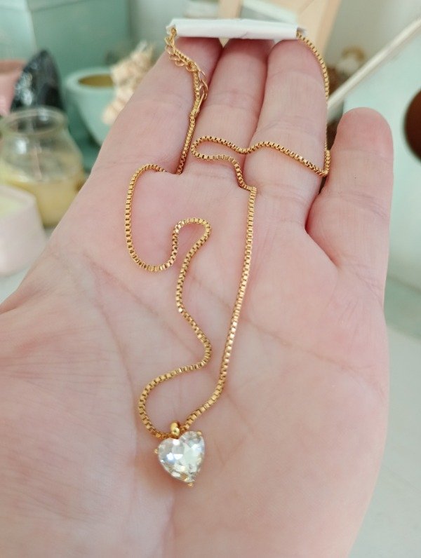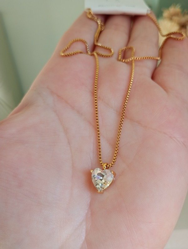 Collar de acero dorado con dije de acero con zirconia