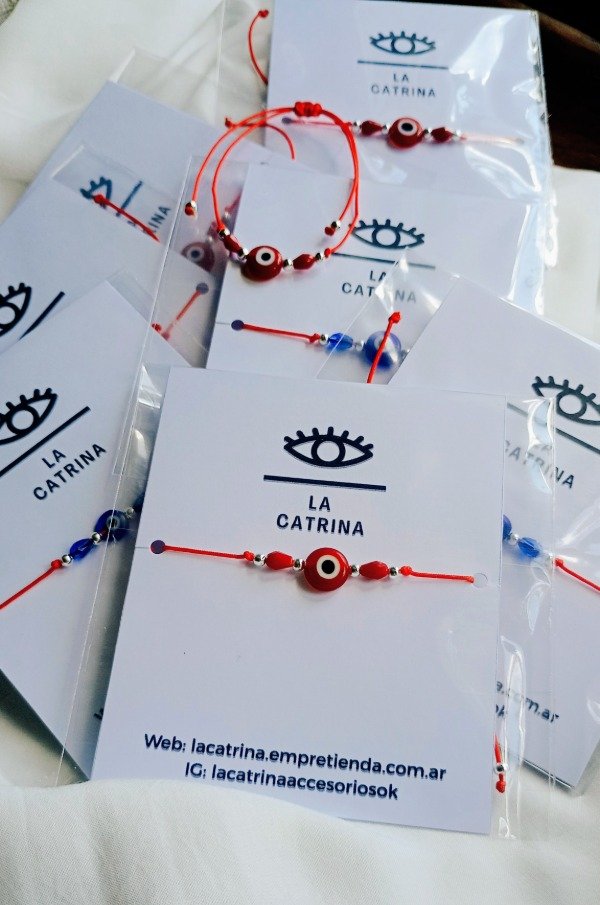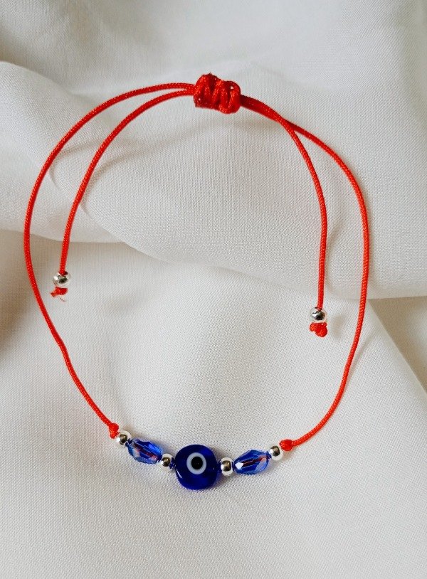 Pulsera de hilo chino con cristales de roca y ojo de vidrio